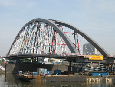 Durante los últimos 100 años, ha habido un plan para construir un puente sobre el río Main en Frankfurt (Alemania), cerca del extremo oriental del puerto. El puente de arco con cables cruzados tiene dos carriles en el sur y un carril en el norte asi como carriles para bicicletas y peatones.